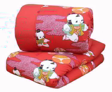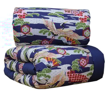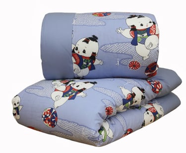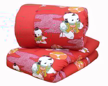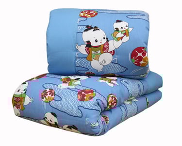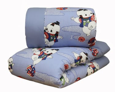 São feitos a mão e em 2 espessuras: com uma manta acrílica de enchimento (natsu futon) ou com duas mantas (fuyu futon).