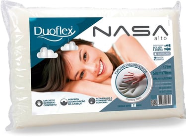 Espuma viscoelástica, altura 17cm, para fronha 50x70cm, capa malha 100% algodão, maciez com extremo conforto e perfeita acomodação da cabeça.