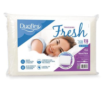 Espuma de poliuretano aerada, altura 12cm, para fronha 50x70cm, 100% lavável em casa, conforto com sustentação, maior ventilação e frescor.